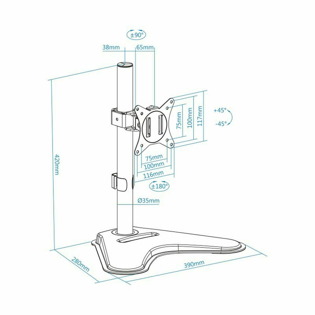 - Compatible: VESA 75 x 75, 100 x 100