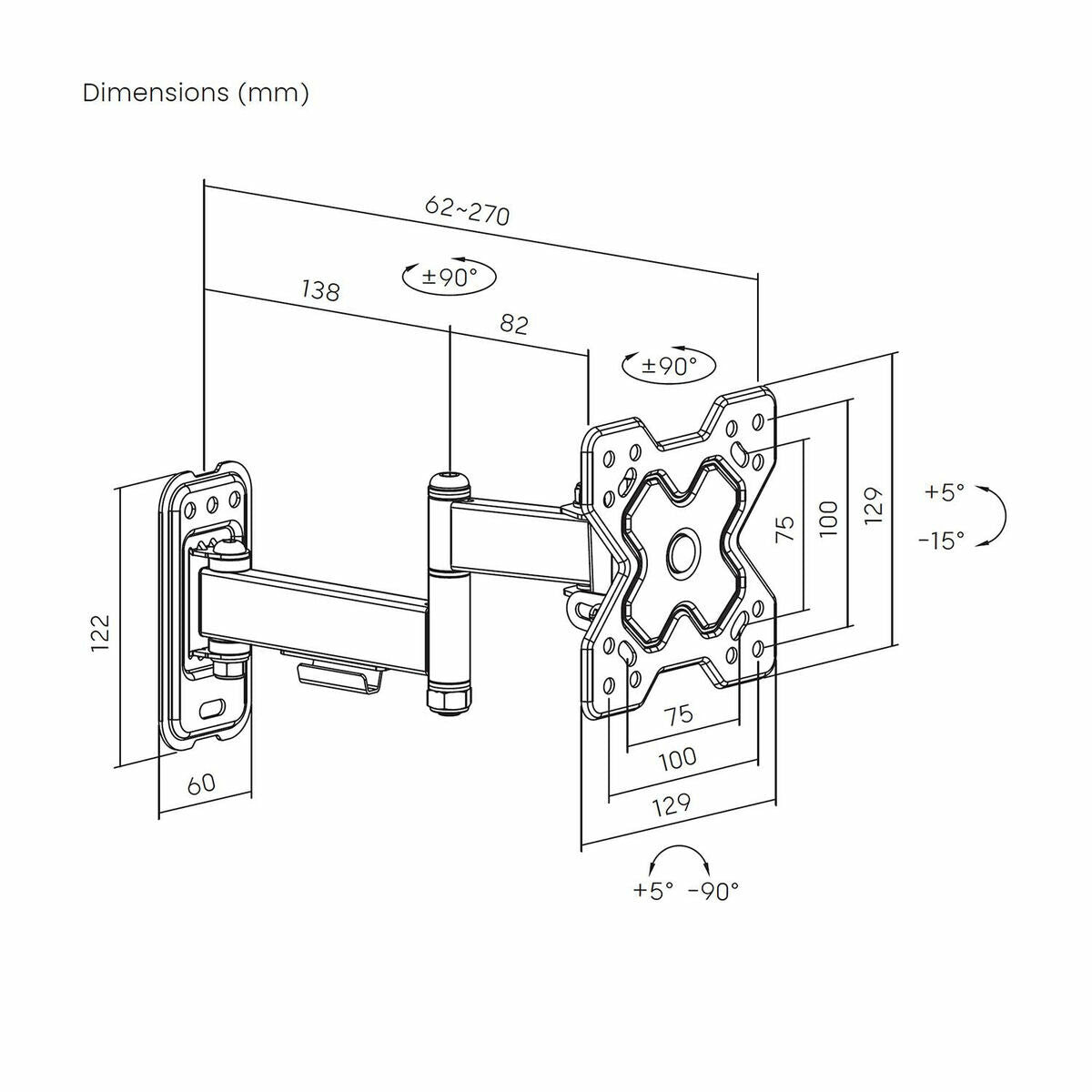 - Compatible: VESA 75 x 75, 100 x 100